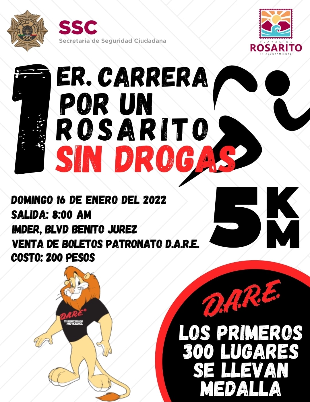 1er. Carrera por un Rosarito Sin Drogas 🏅 Domingo 16 de Enero del 2022.